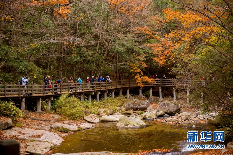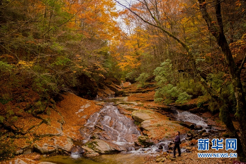 光雾山红叶观赏时间可从10月到11月,第一个阶段看红叶五彩斑斓,第二个阶段看层林尽染,第三个阶段看万叶飘丹,让游客与摄影爱好者尽享色彩之美。新华网发(曹鹏 摄)